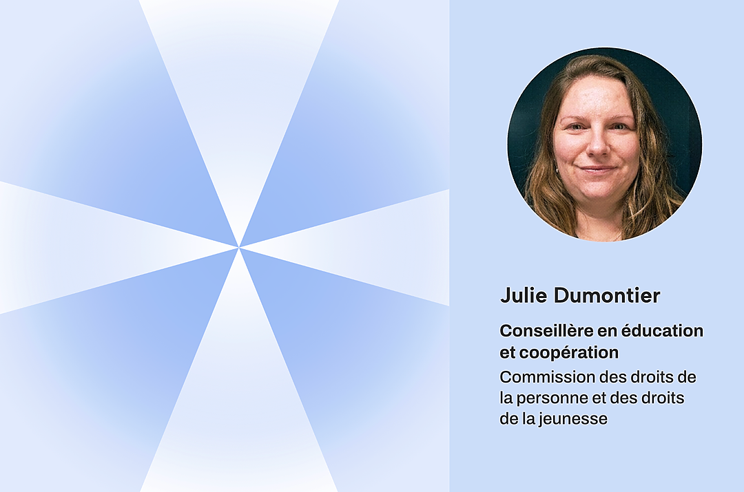 Julie Dumontier est conseillère en éducation et de coopération à la Commission des droits de la personne et des droits de la jeunesse depuis 2012. Elle a auparavant œuvré dans la promotion des droits humains de même que dans le domaine des technologies en tant que blogueuse, formatrice, rédactrice et coordonnatrice. Après des études de premier et deuxième cycles en lettres et en sciences sociales à l'Université Laval, elle a complété des études de premier et de deuxième cycles en droit à l'Université du Québec à Montréal. Elle se spécialise dans les enjeux touchant les droits des femmes, les droits des personnes LGBTQI+, le harcèlement discriminatoire, les droits dans les technologies ainsi que le plaidoyer.